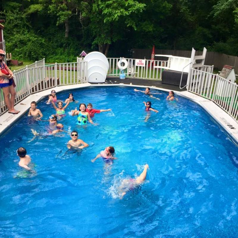 Every day, campers have lots of time to get wet! Our two large pools allow for the beginner to learn with confidence and the advanced swimmer to progress. We have a large pool which is designed for instruction. The shallow end is 3 feet deep which is shallow enough for our smallest campers to touch the bottom. The pool gradually slopes to 10 ft and is deep enough to dive. Our smaller pool is 4 feet deep. Campers are scheduled for a daily swim period that includes instruction and free swim.